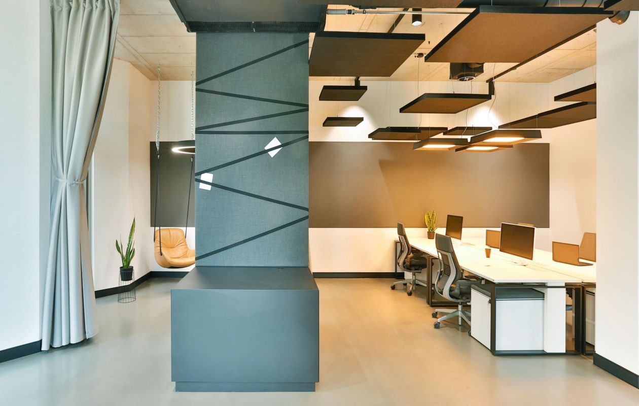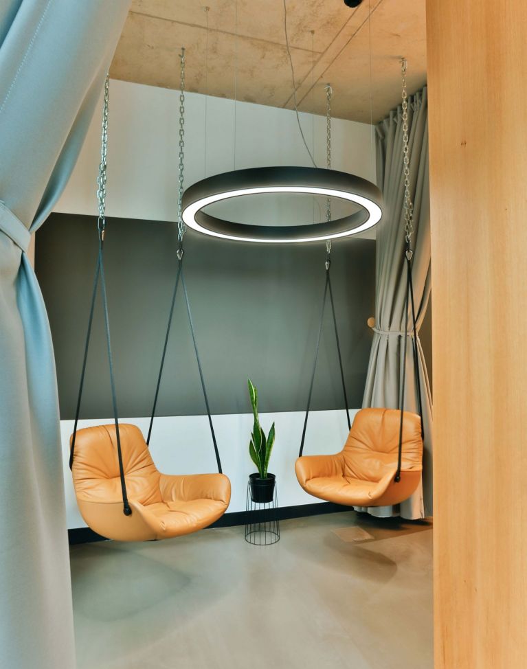 Die Digitalisierung verändert alles: Wie wir leben, wie wir arbeiten. Die damit einhergehende Umstellung von analogem zu digitalem Arbeiten kann mithilfe von digitalen Werkzeugen wie der Gamification erleichtert werden. Das Unternehmen Mediatain -2017 in Bamberg gegründet- entwirft in diesem Kontext effiziente und innovative Softwarelösungen unter Anwendung agiler Arbeitsmethoden. Unterstützt wird die Arbeit des Start-Ups durch die neu konzipierten Räumlichkeiten. Dabei spiegelt das neue Innenarchitekturkonzept in der ehemaligen Baumwollspinnerei sowohl die Philosophie und die moderne Arbeitsweise des zeitgemäßen Unternehmens als auch den industriellen Charme des geschichtsträchtigen Gebäudes wider. Im Eingangsbereich bilden die ursprünglichen Mauerwerkswände einen starken Kontrast zu Modernität und Materialität der Ausstattung. Diese Zone empfängt Besucher, ermöglicht ungestörte Besprechungen und ist mit einem flexiblen Begegnungsbereich inklusiv integrierter Teeküche für größere Meetings oder gemeinsame Pausen ausgestattet. Der Hauptraum bietet klassische Desksharing Arbeitsplätze, die auch für Coworking zur Verfügung stehen, sowie einen akustisch abtrennbaren informellen Rückzugsbereich. Ein separates Tonstudio und ein multifunktionaler Kinoraum komplettieren die Anforderungen der verschiedenen Arbeitsweisen.